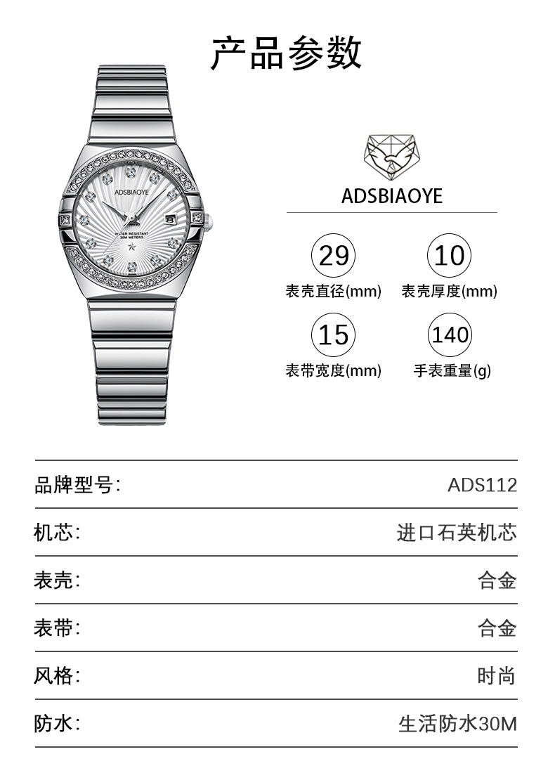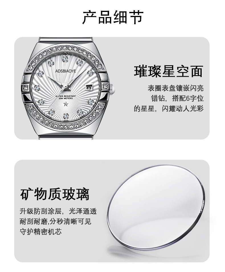 Ada Swiss Women's Watch New Waterproof Luminous Live Broadcast Foreign Trade Fashion Popular Watch Quartz Watch for Women