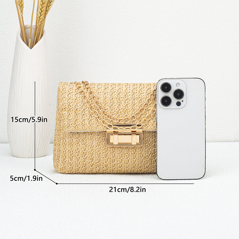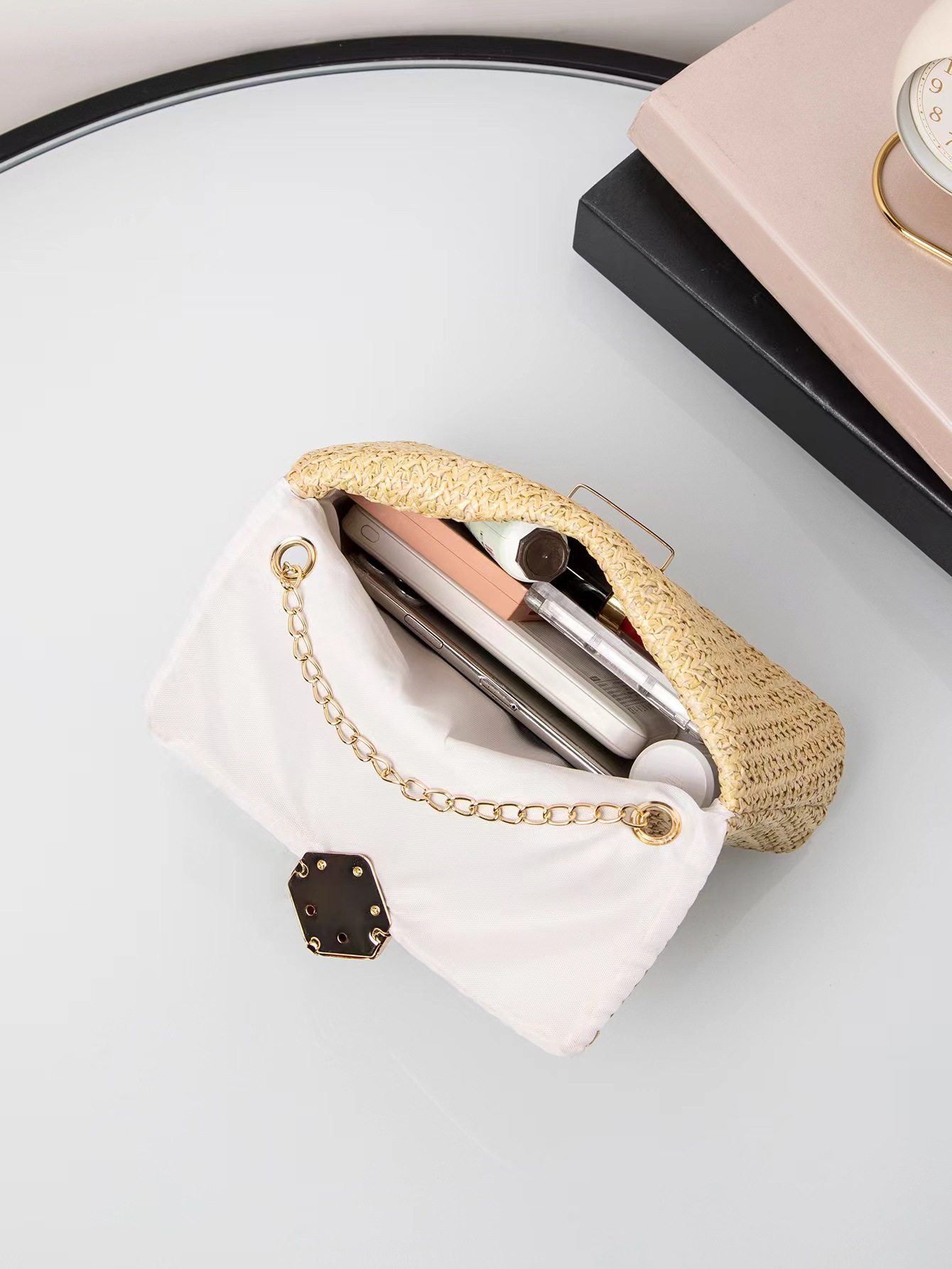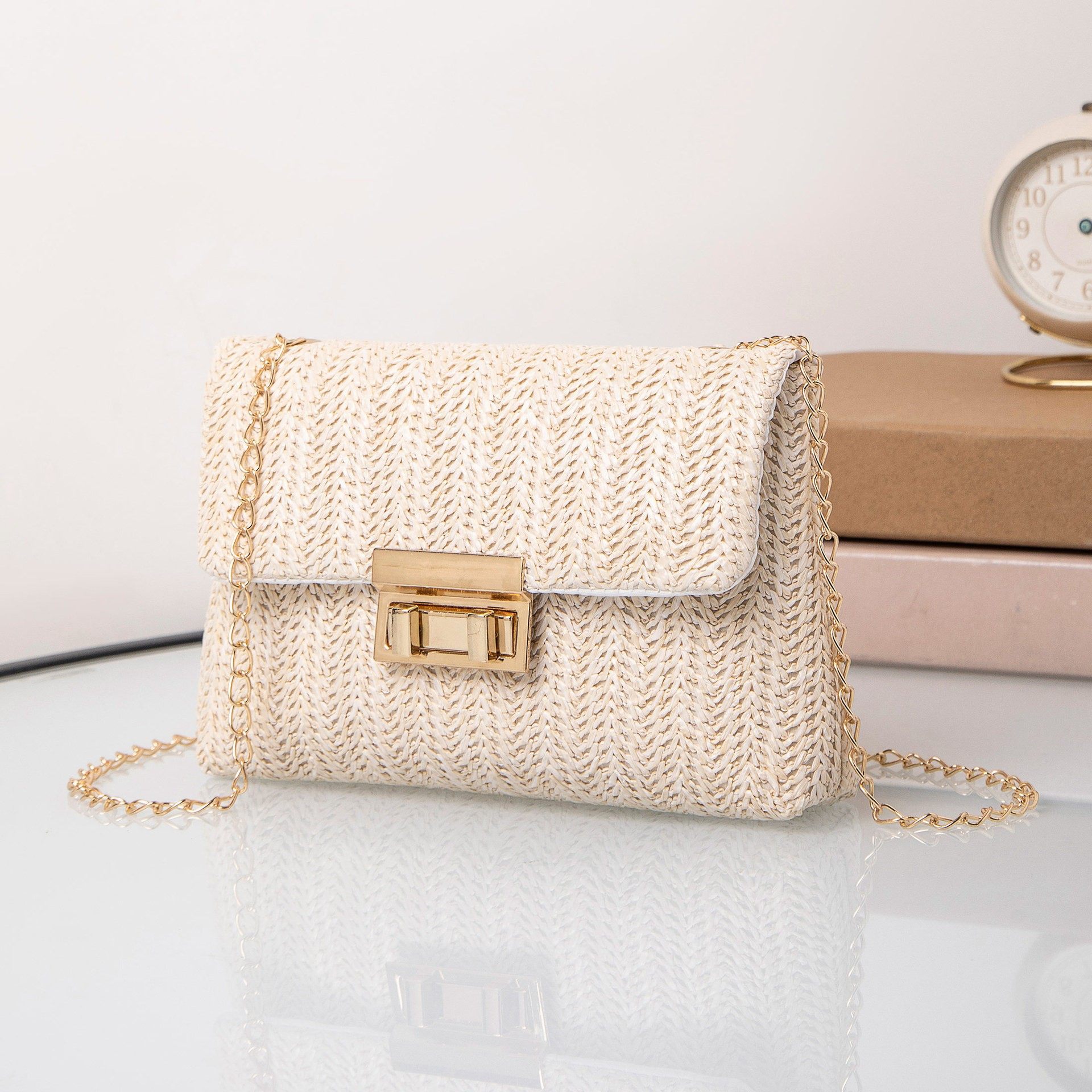 Dropshipping Fashionable Straw Double-Ended Lock Shoulder Bag 2026 New Trendyy Versatile Korean Style Simple Small Square Bag
