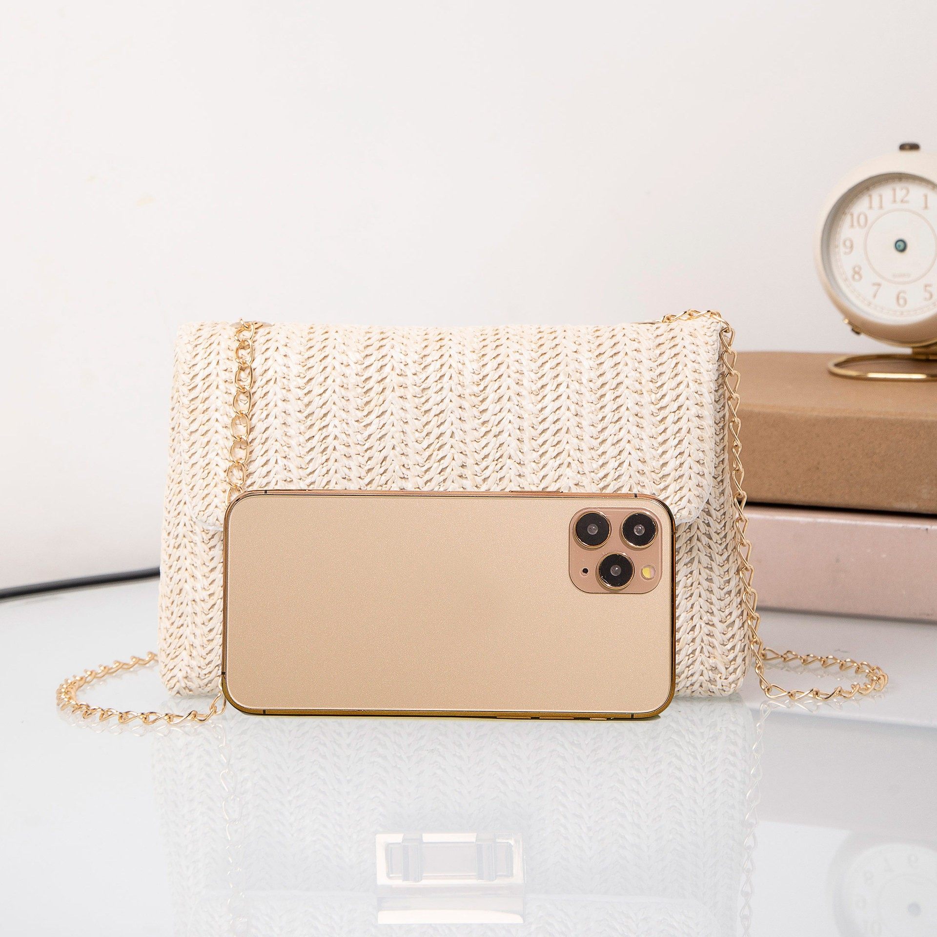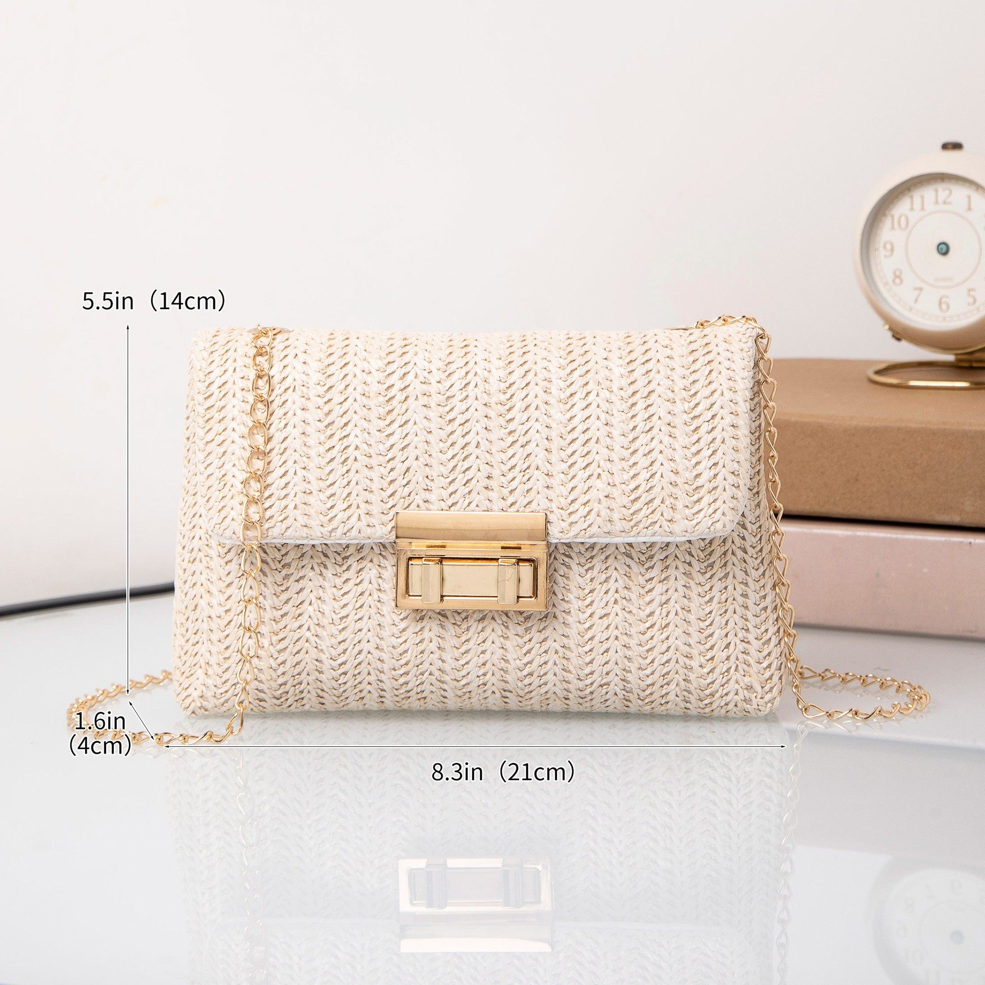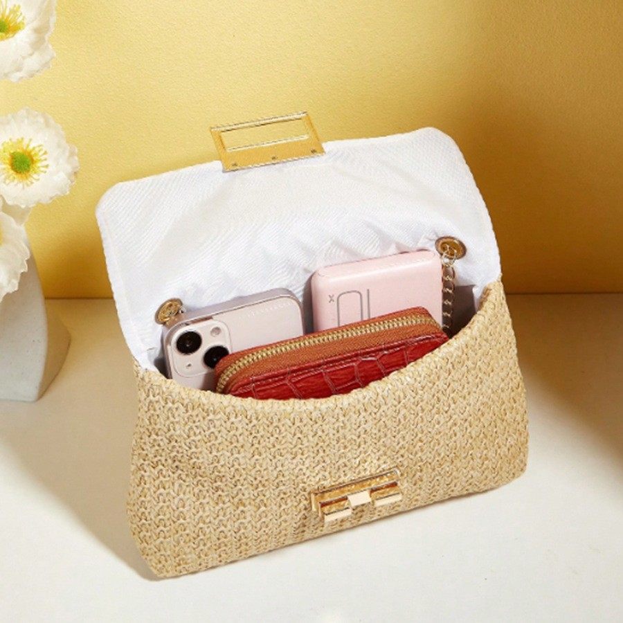 Dropshipping Fashionable Straw Double-Ended Lock Shoulder Bag 2026 New Trendyy Versatile Korean Style Simple Small Square Bag