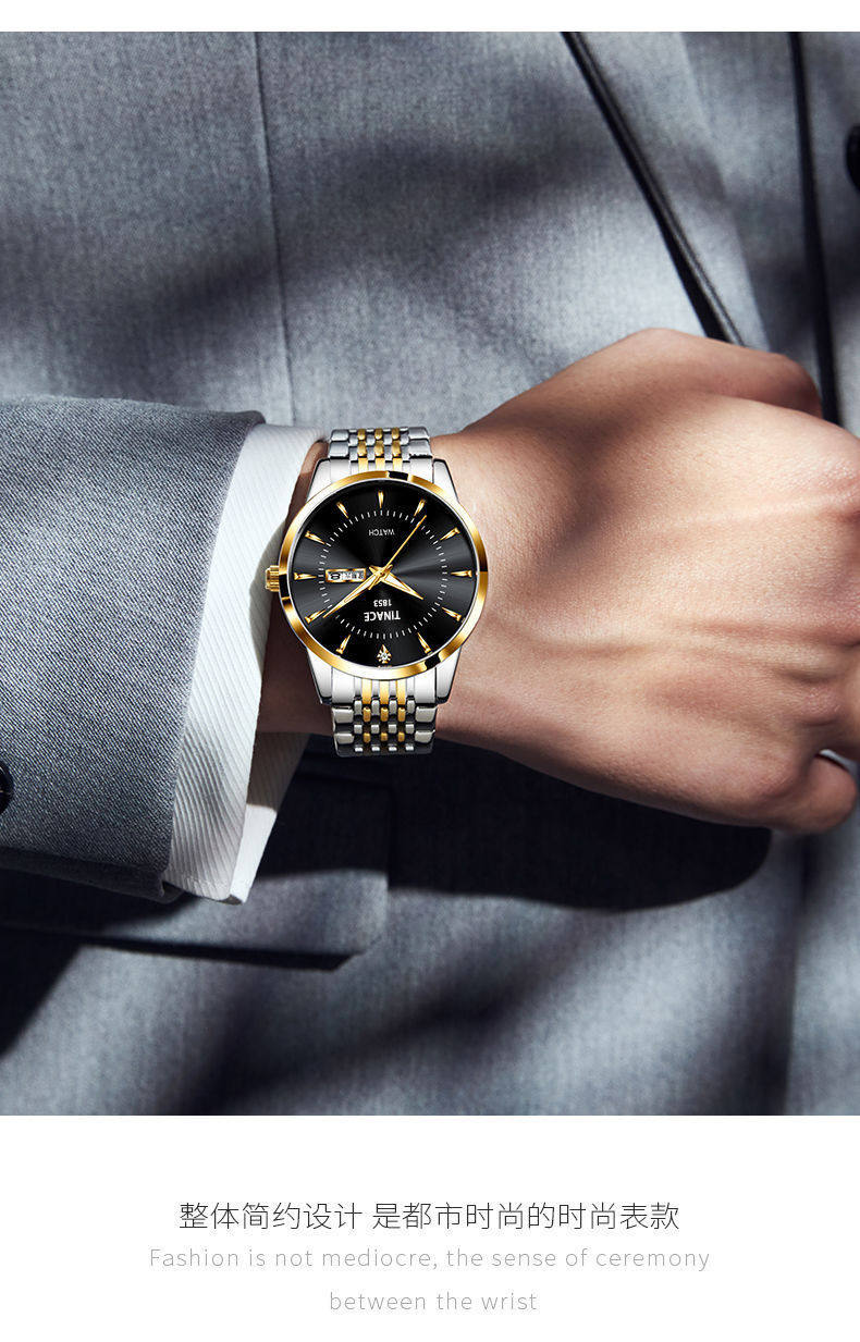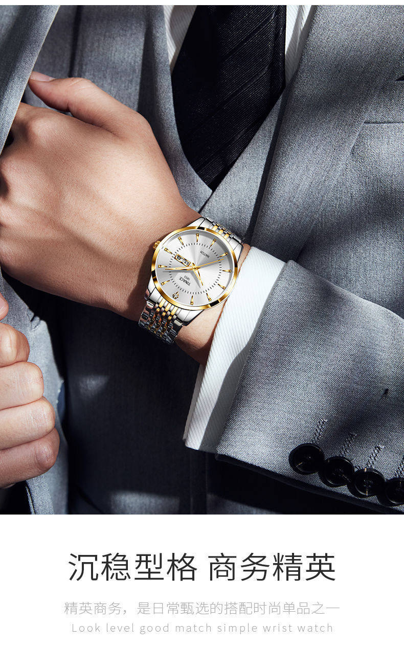 Fretilon Cross-border English Double Calendar Automatic Non-mechanical Watch Men's Luminous Waterproof Business Casual Watch