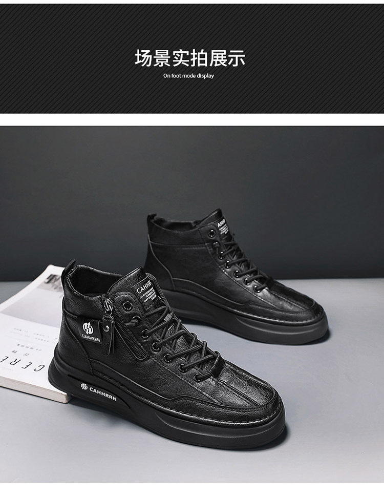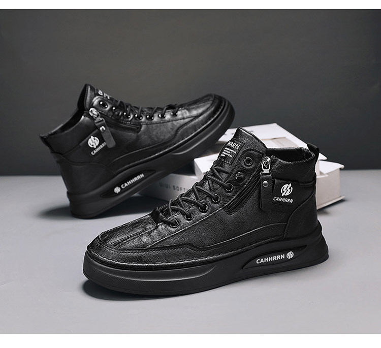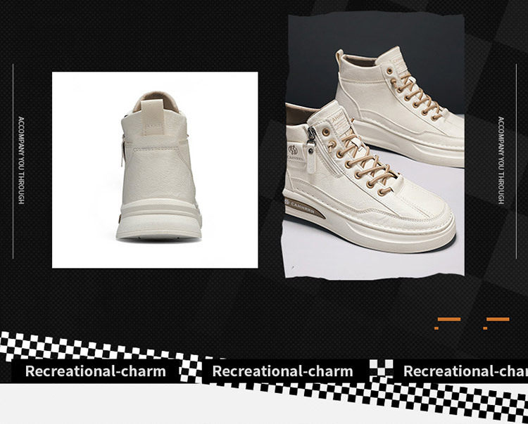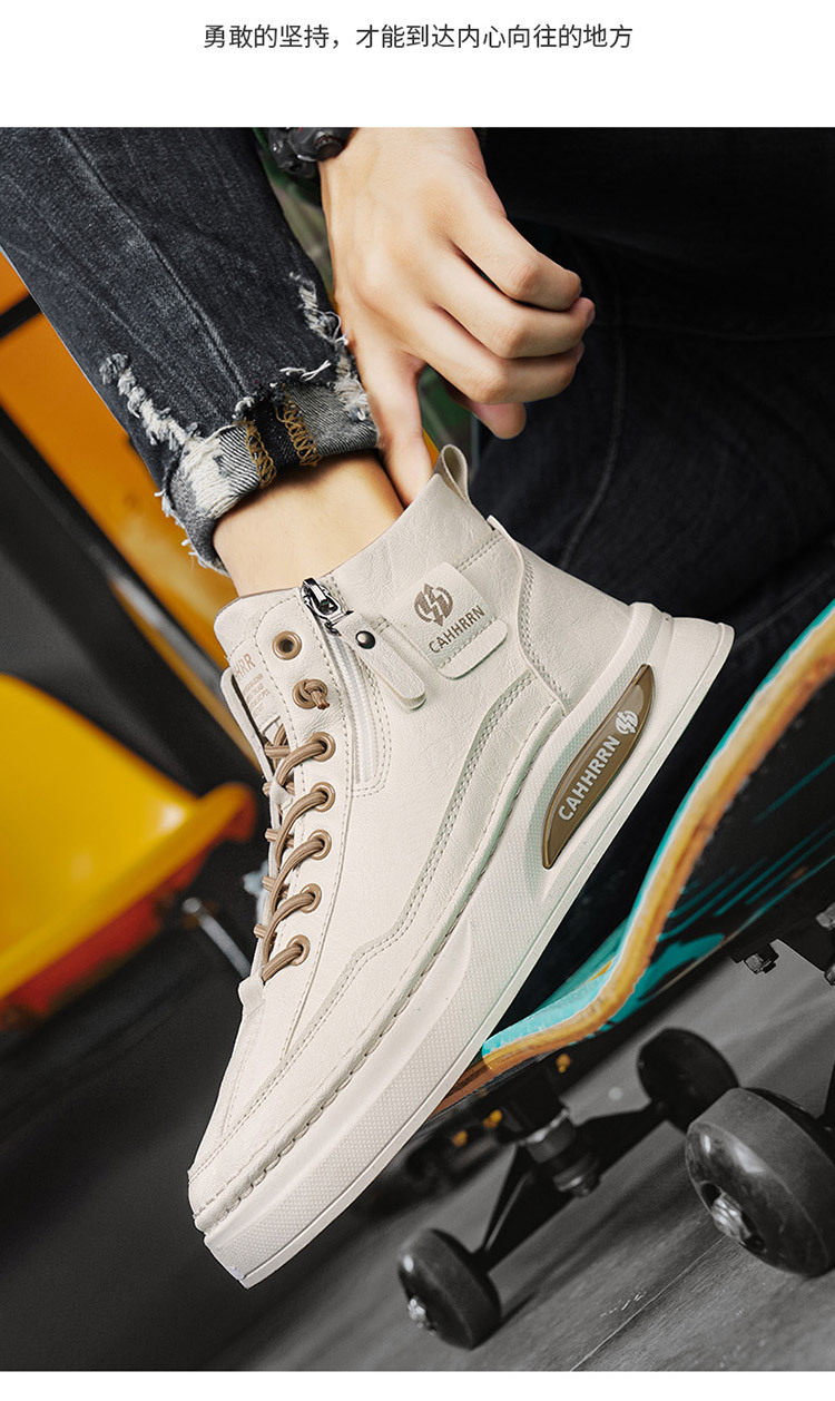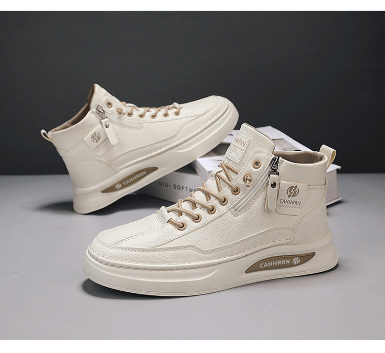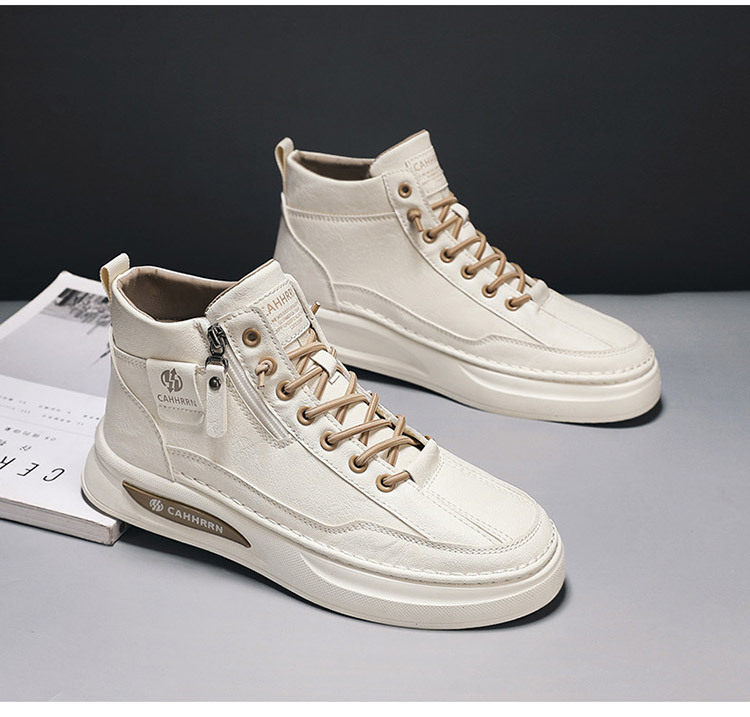 High-Top Men's Shoes 2026 Autumn and Winter New British Style Casual Leather Shoes Trendyy Versatile Sports Sneakers Fashionable White Shoes