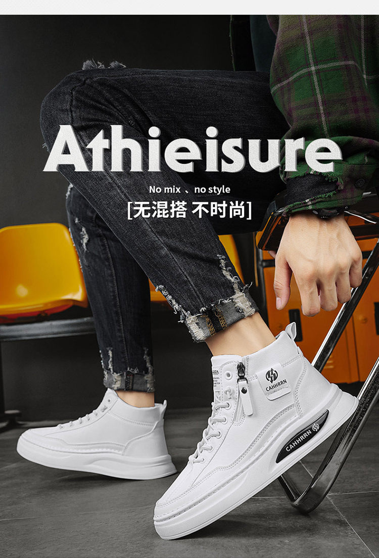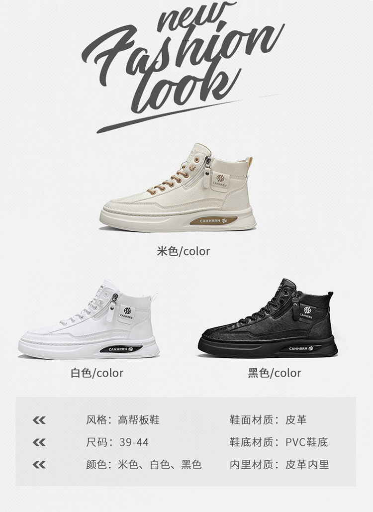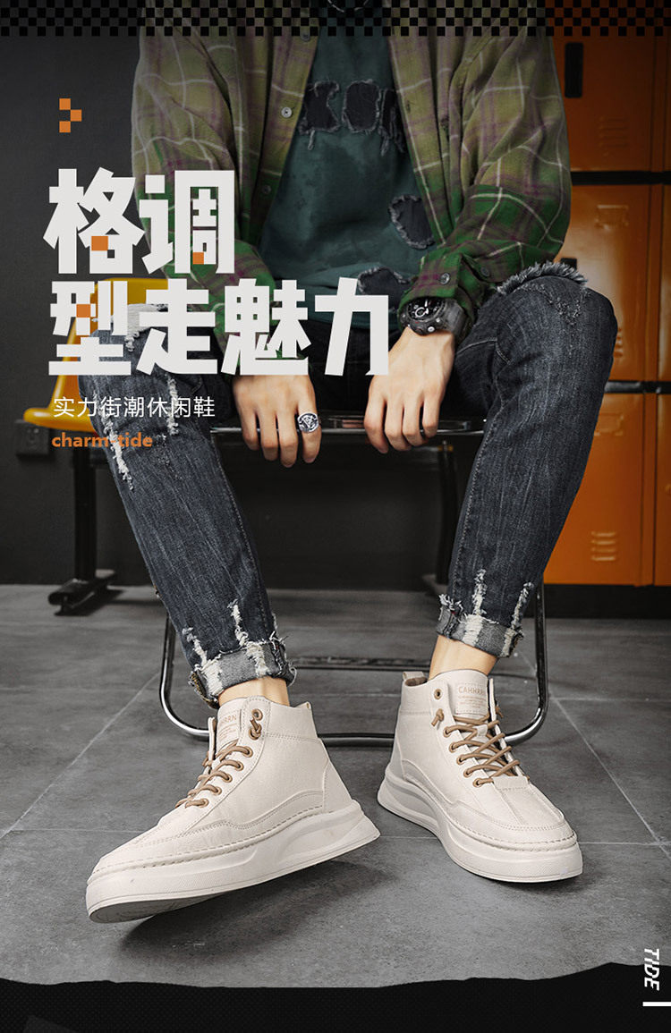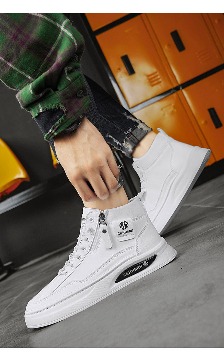 High-Top Men's Shoes 2026 Autumn and Winter New British Style Casual Leather Shoes Trendyy Versatile Sports Sneakers Fashionable White Shoes
