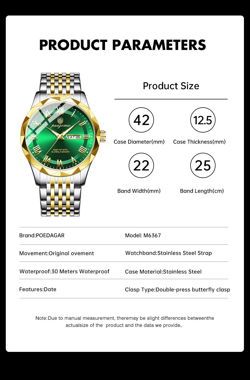 Swiss Brand Luxury Waterproof Luminous Men's Watch New Quartz Watch Live Broadcast Foreign Trade Hot Model Dropshipping